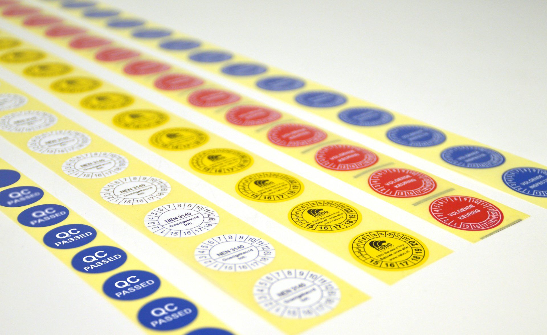 Prüfplaketten für Aufzüge, elektrische Anlagen oder Betriebsmittel, Elektrogeräte, Gasflaschen, Leitern, Feuerlöscher u.v.m. Normgerecht, in unterschiedlichen Größen, Farben und Materialien, Standard oder individuell.